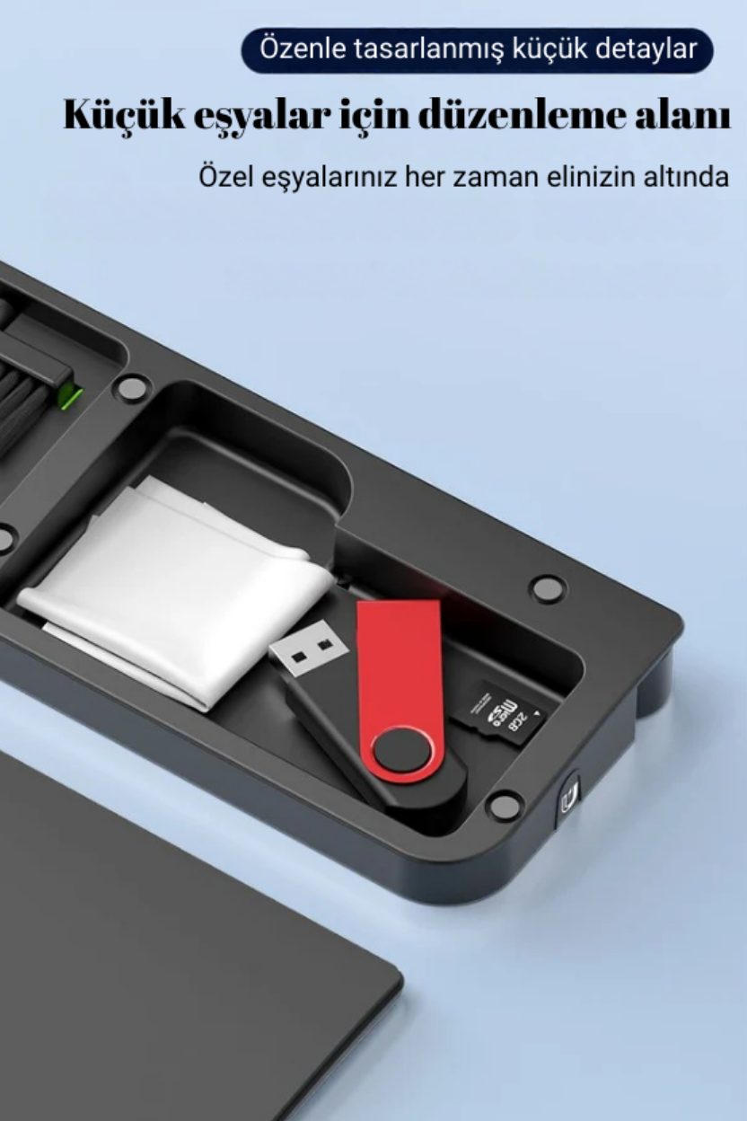 Manyetik alanlar sayesinde USB bellek, küçük metal parçalar ve aparatlar sabitlenir ve kaybolmaz. Düzenli kullanım sağlar.